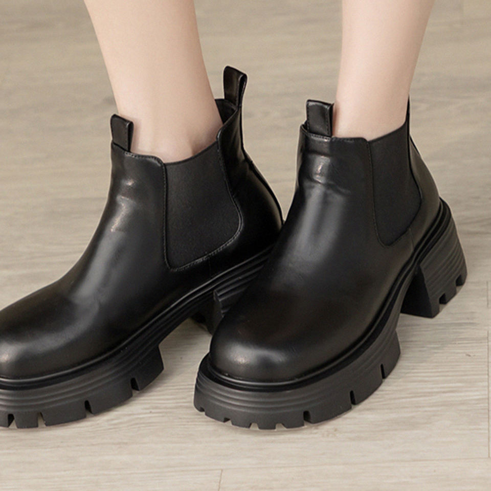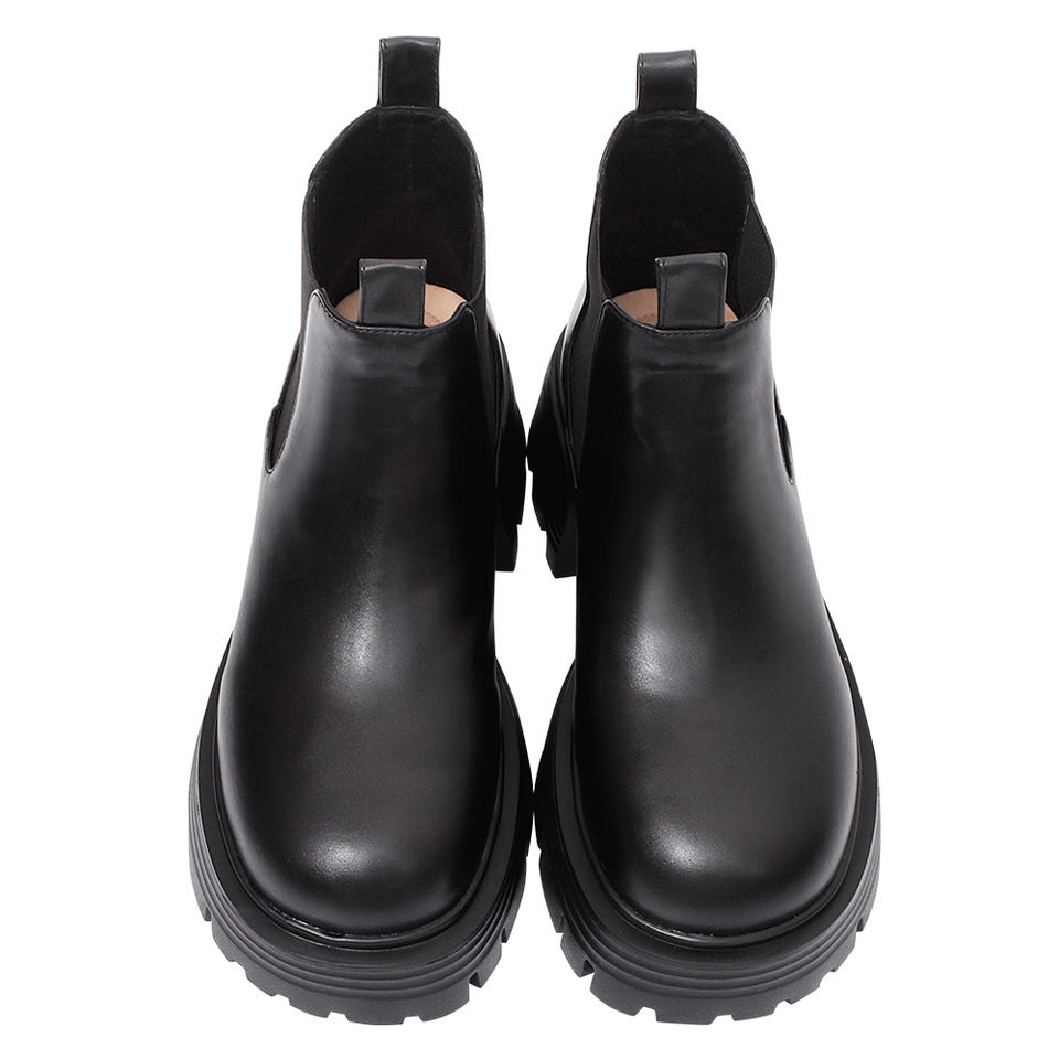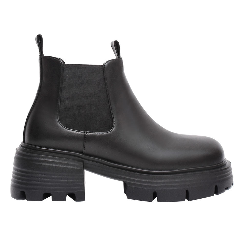 Women Black Platform Ankle Boots 6.5cm Chunky Heel Water-Repellent Stretch Faux Leather Wholesale