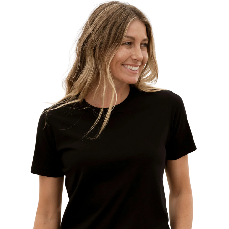 Women Black Short Sleeve Crew Neck T Shirt 100% Luxury Organic Cotton Pre Shrunk GOTS Certified Premium Soft Classic Fit Tee