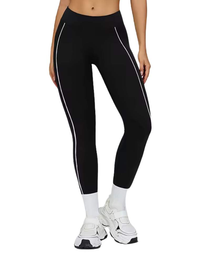 Women Black White Contrast Sports Bra And High Waist Leggings Set Stretch Yoga Fitness Gym Workout Wear Custom OEM Wholesale