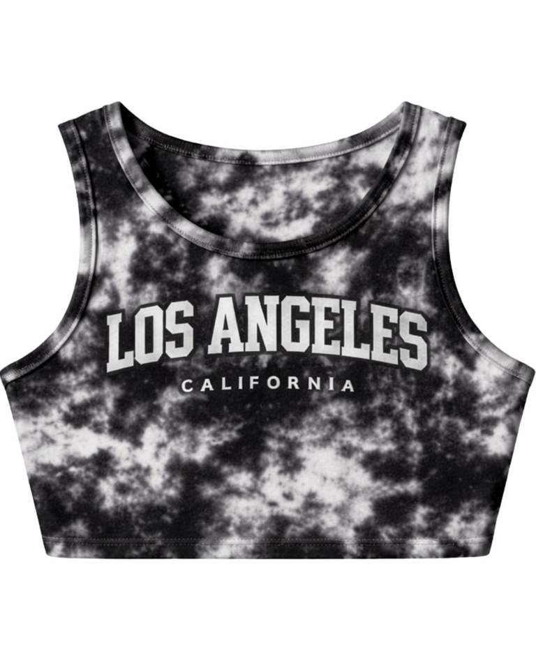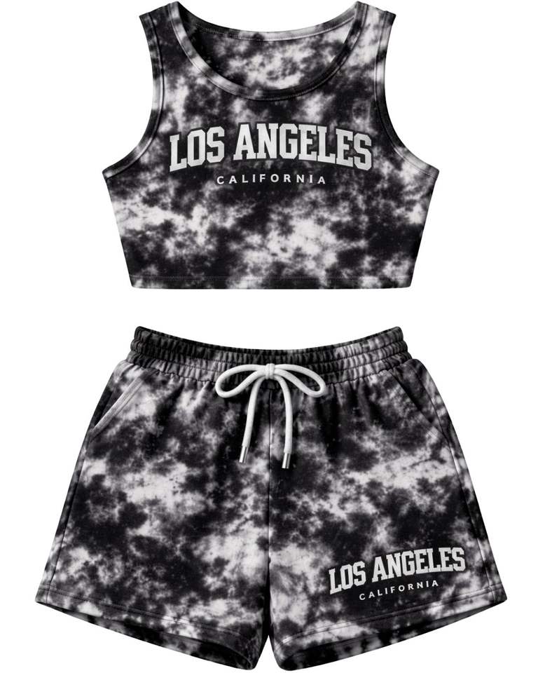 Women Black White Tie Dye Crop Tank Top And Shorts Two Piece Set Sleeveless Round Neck Summer Casual Lounge Wear Outfit Custom