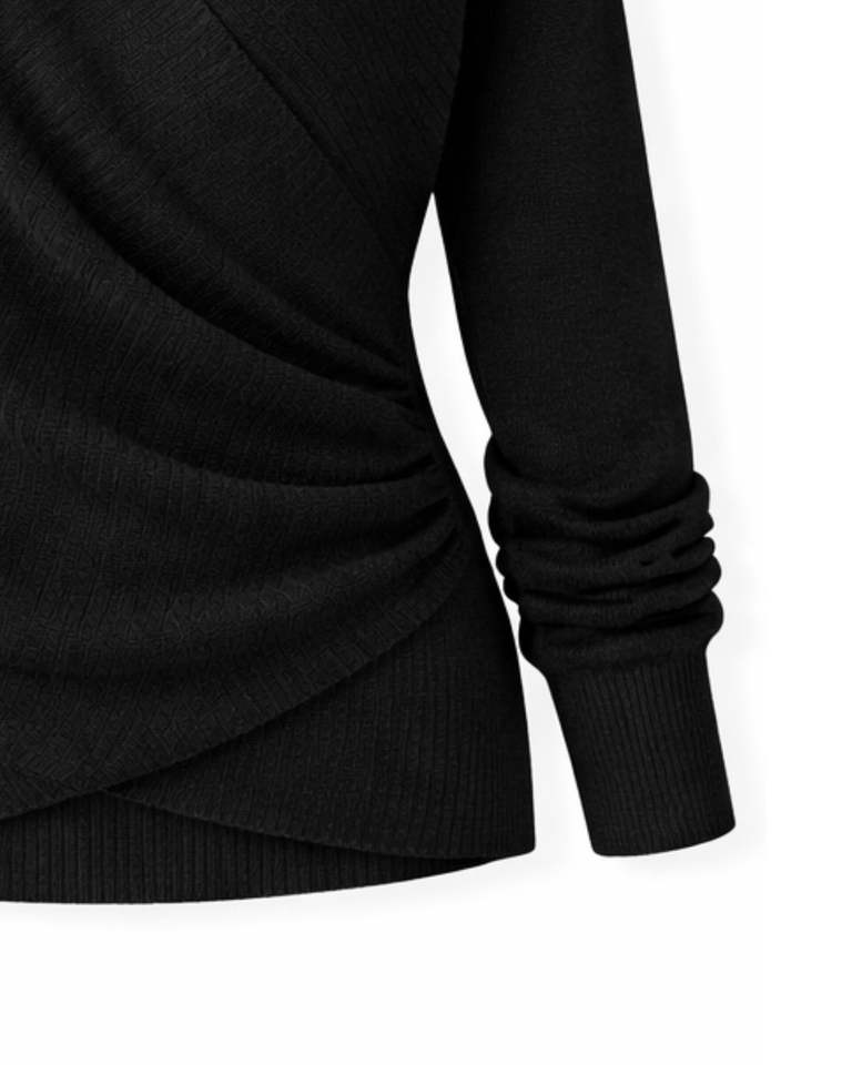 Women Black Wrap Style Knit Sweater Long Sleeve V Neck Soft Casual Winter Top Elegant Ladies Fashion Pullover For Daily Wear