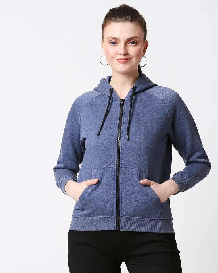 Women Blue Full Zip Hoodie Fleece Soft Warm Long Sleeve Front Pockets Custom Logo Option Comfy Winter Casual Wear Anti-Pilling