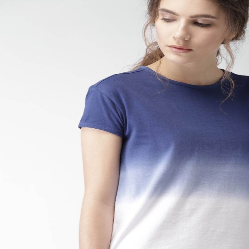 Women Blue & White Ombre-Dyed Round Neck T-shirt Soft Cotton Blend Color & Design Customization Bulk Orders Available