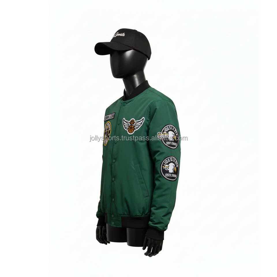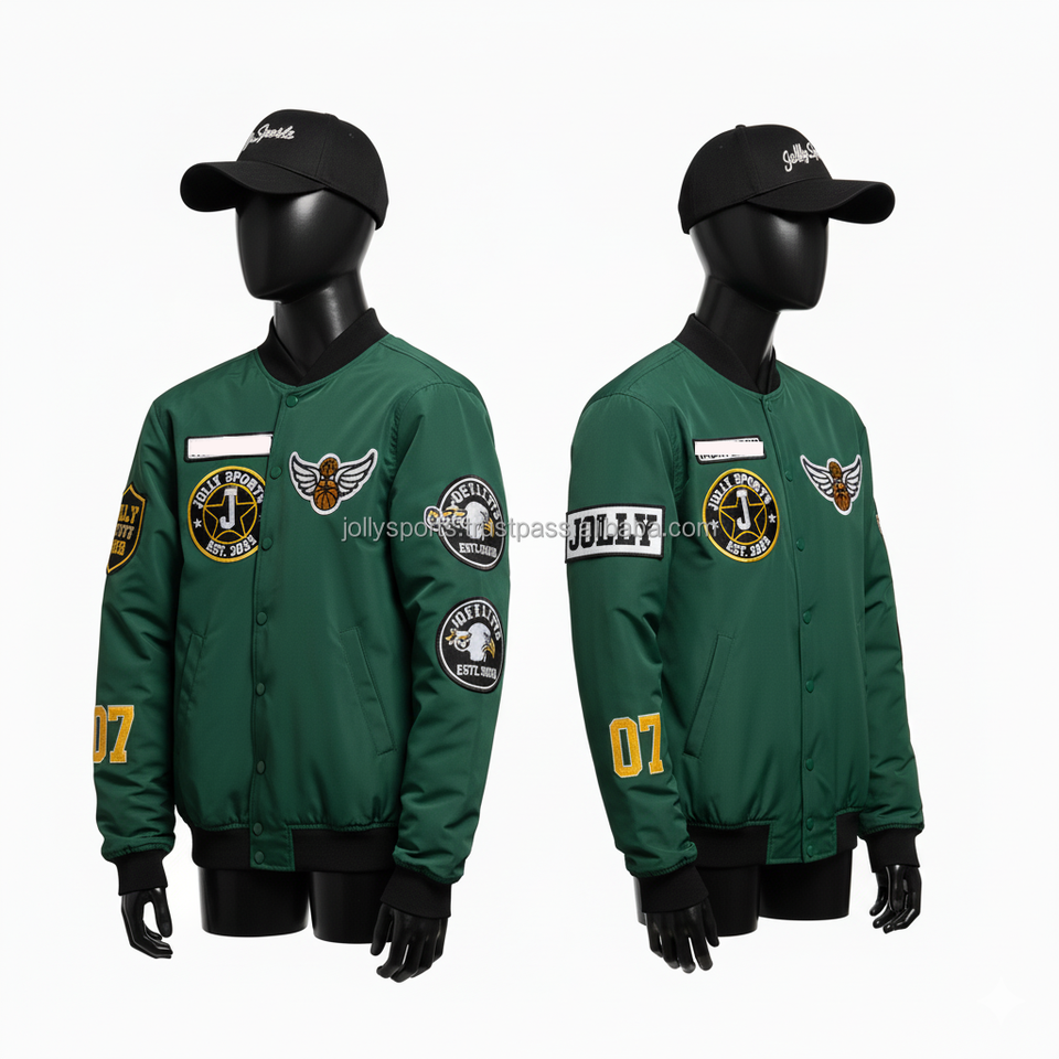Women Bomber Jacket 230 GSM Polyester Material Green Color Embroidered Custom Logo Casual Street Fashion Women's Bomber Jackets