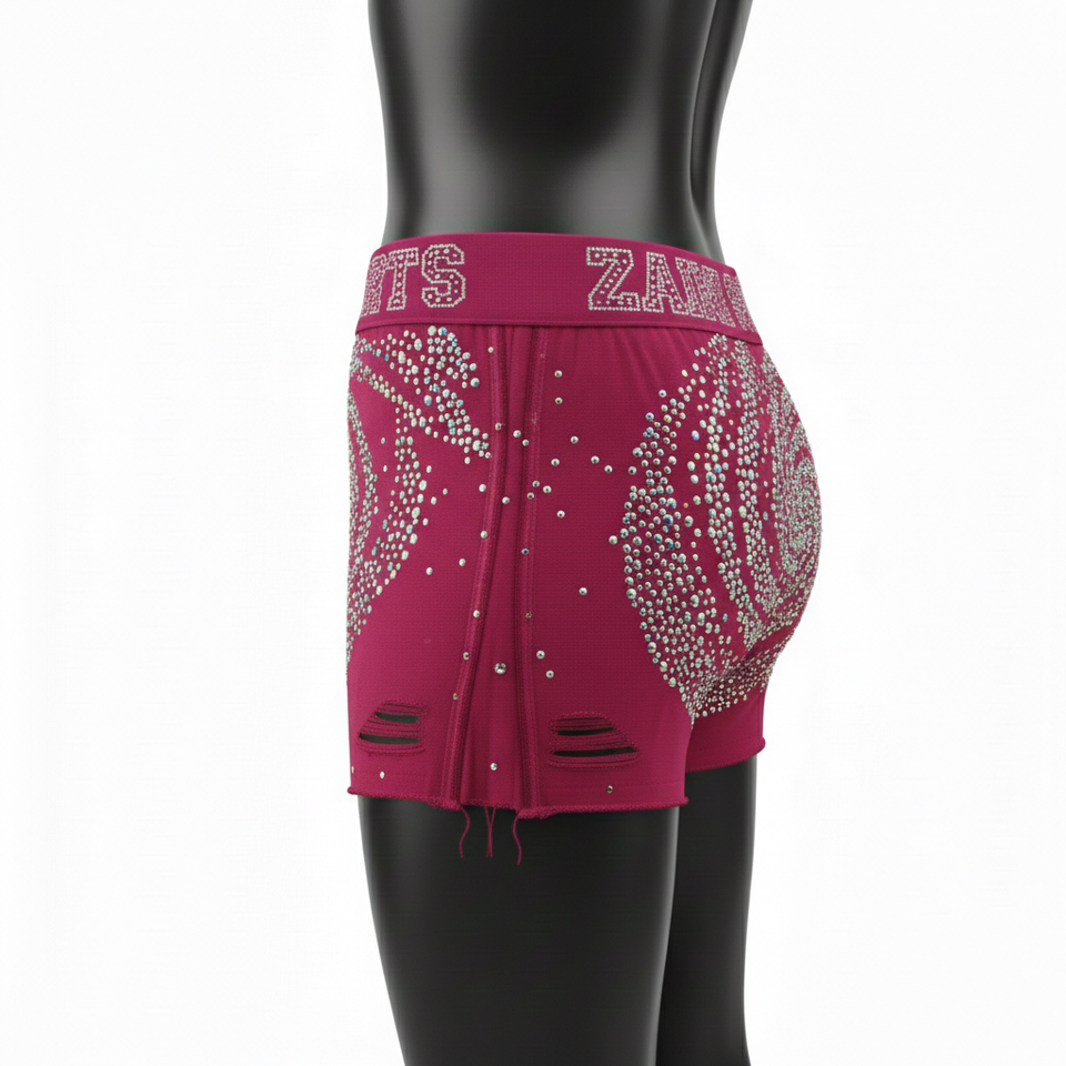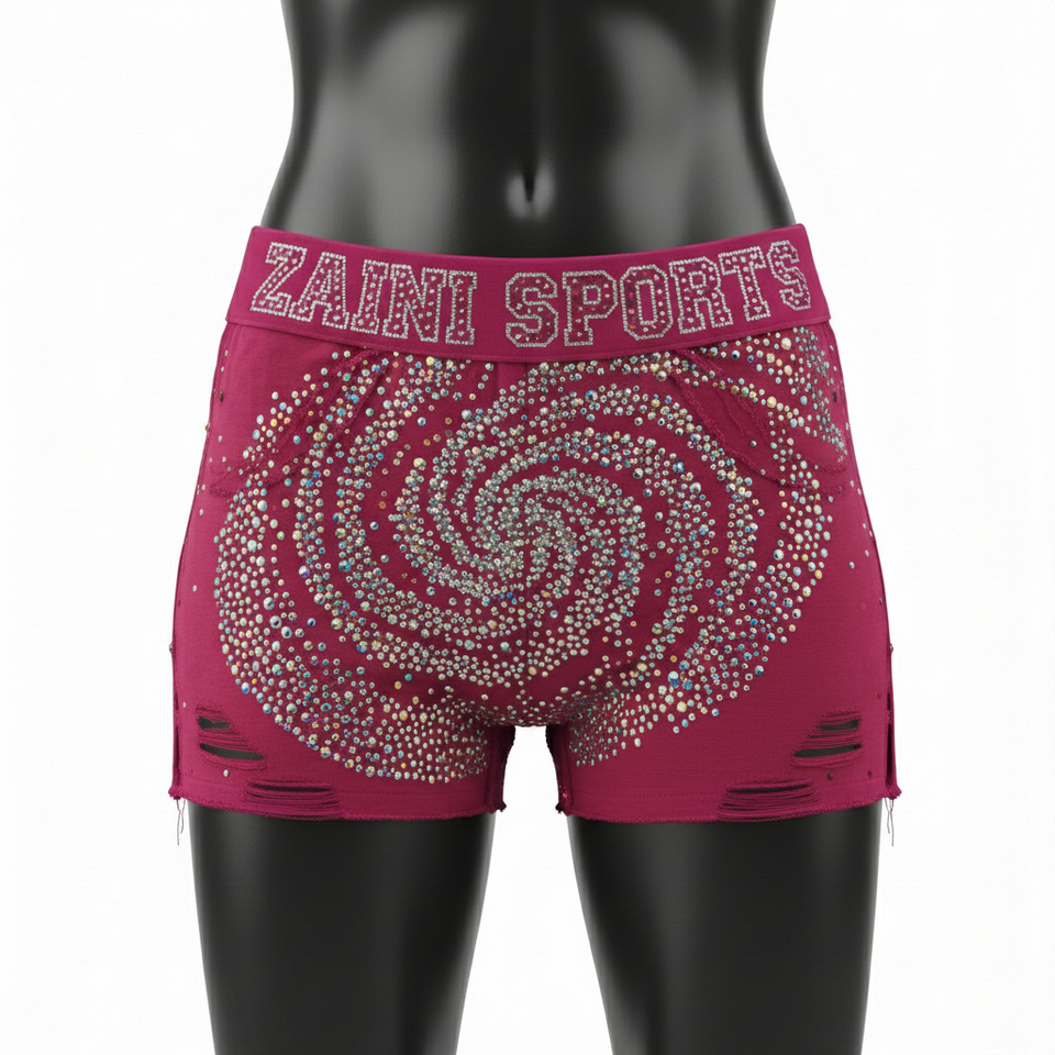 Women Booty Short Premium Cotton Spandex Stretch Fabric Wine Color Hotfix Rhinestone Custom Logo women's shorts