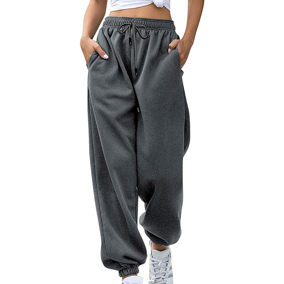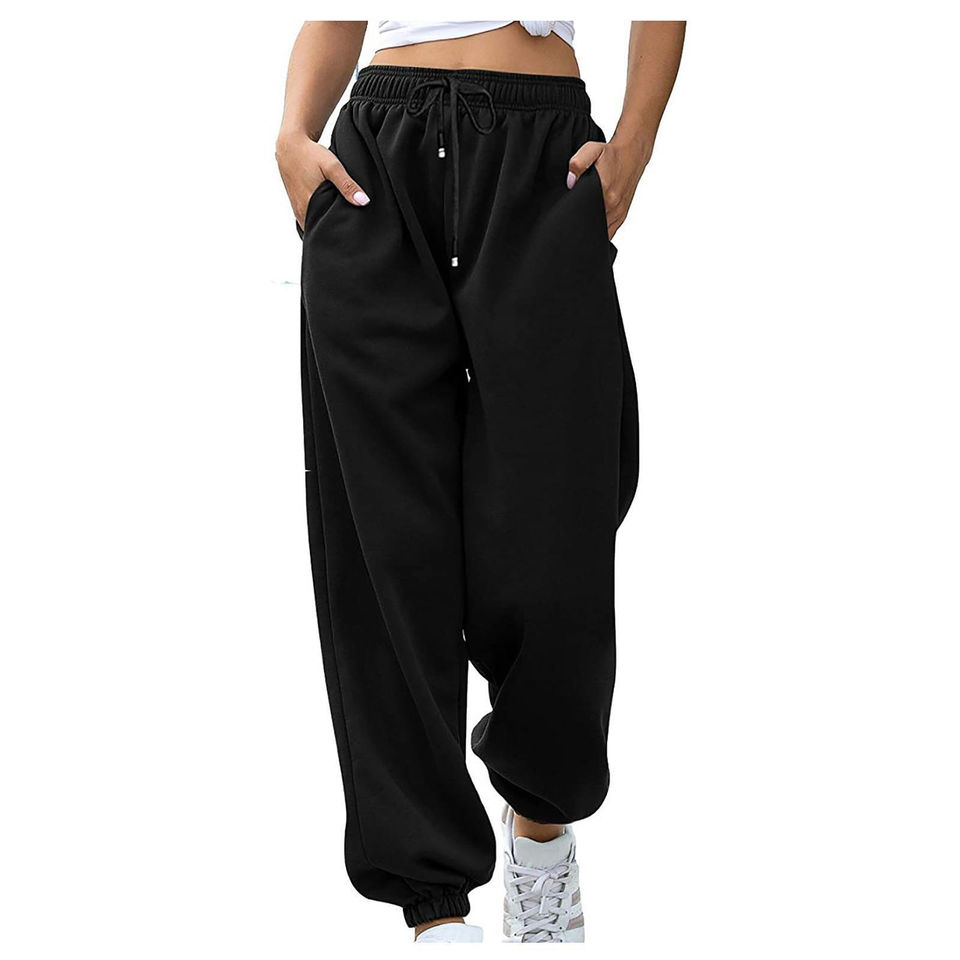 Women Bottom Sweatpants Baggy Pockets Mid Waist Sporty Gym Regular Fit Breathable Elastic Waist Eco-Friendly Jogger Pants Lounge
