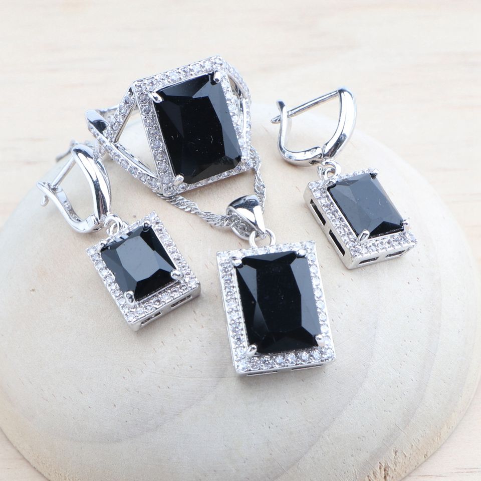 Women Bridal 925 Silver Green Emerald Jewelry Sets White Cubic Zircon Topaz Bridal Earrings Ring Pendant Wedding Necklace Set