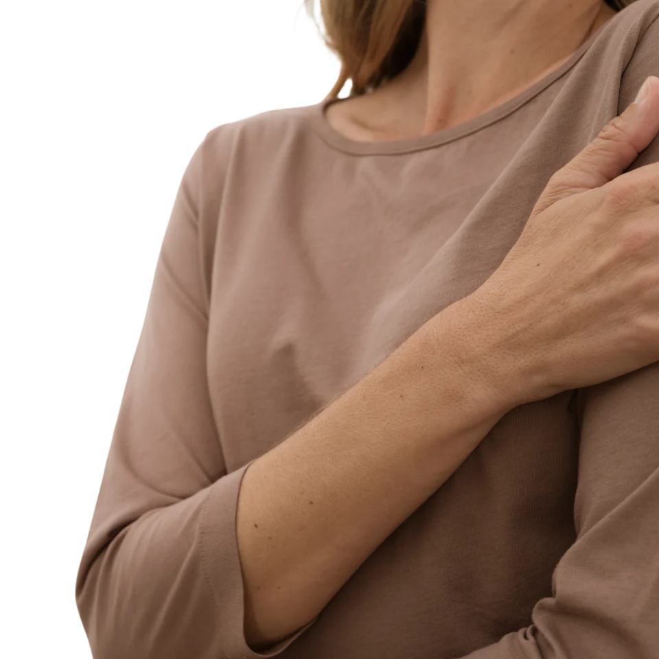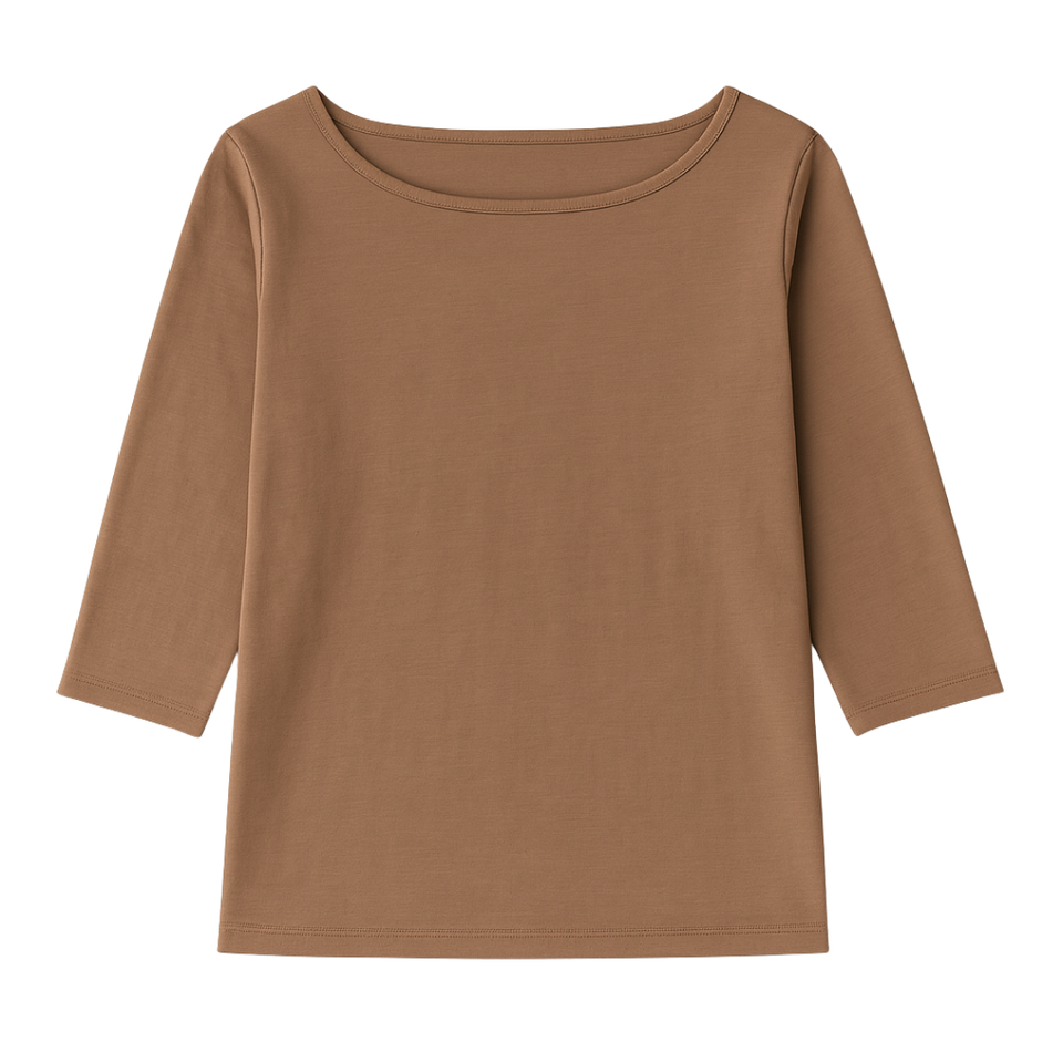 Women Brown 3/4 Sleeve Boat Neck T Shirt 100% Luxury Organic Cotton Pre Shrunk GOTS Certified Premium Soft Classic Fit Tee