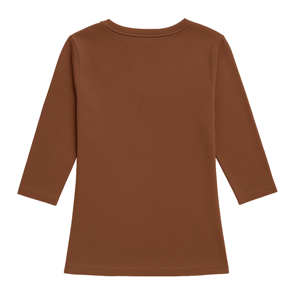 Women Brown 3/4 Sleeve V Neck T Shirt 100% Luxury Organic Cotton Pre Shrunk GOTS Certified Premium Soft Breathable Classic Tee