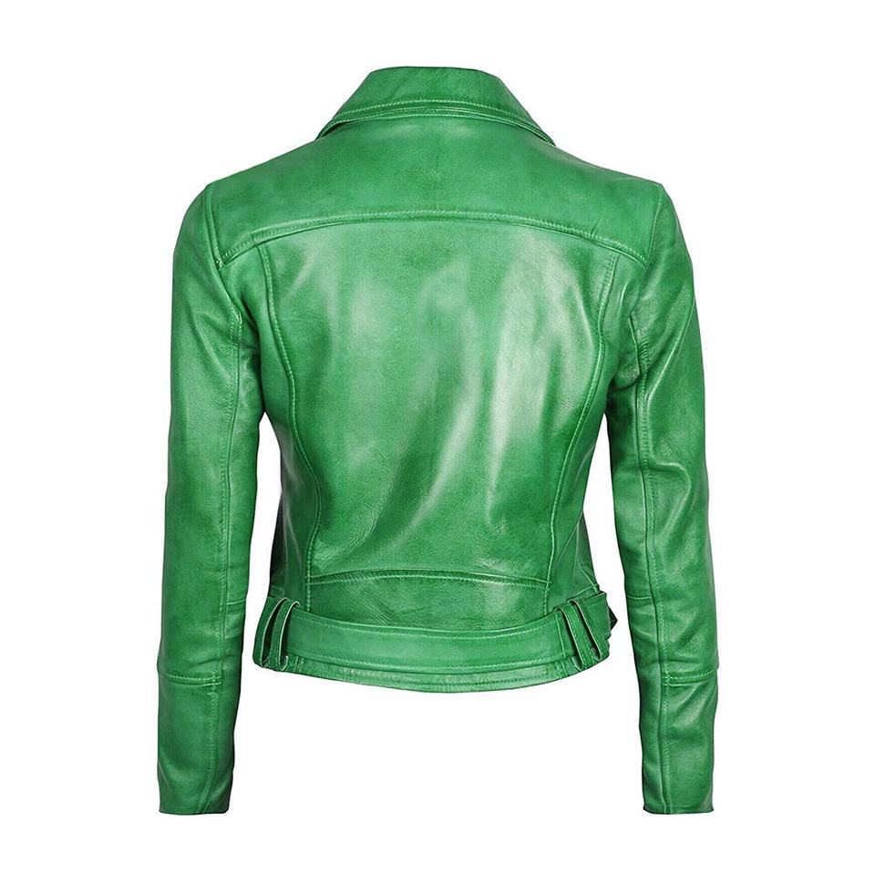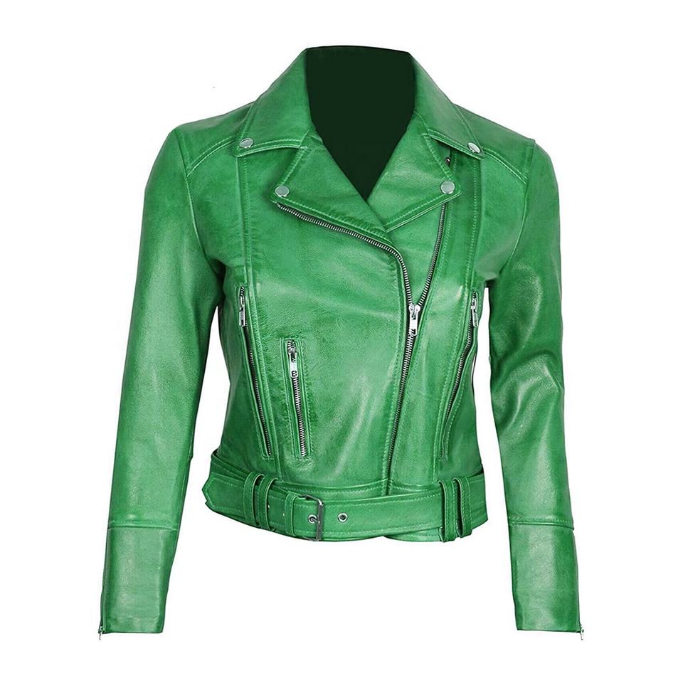 Women Brown Breathable Leather Cotton Motorcycle Biker Racing Riding Quilted-Collar Fashion-Zippers Jacket With Belted-Waist