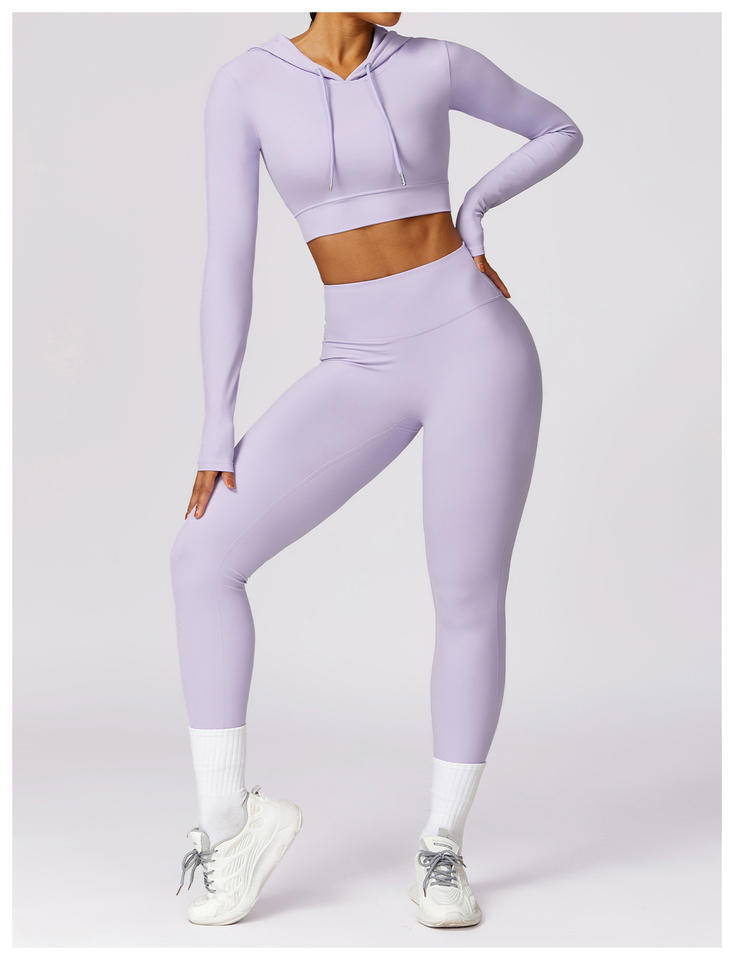 Men Winter Fleece Butt Lift Yoga Leggings Drawstring Design Elastic Hem Hoodie Two Piece Gym Fitness Workout Set