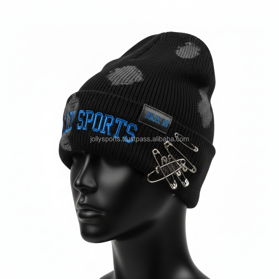 Women Casual Beanie Cap Premium Acrylic Stretch Knit Fabric 190 GSM Black Destroyed Look Custom Logo jacquard Beanie Cap