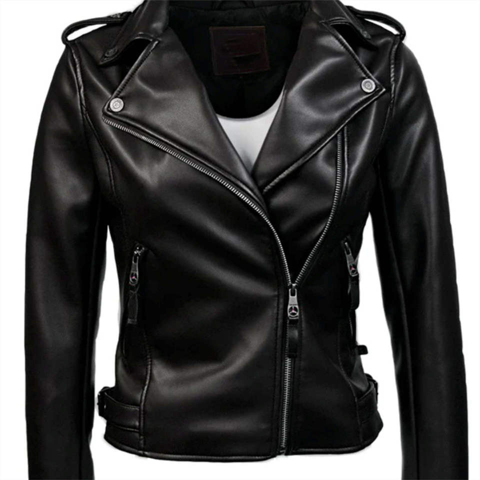 Women Casual Genuine Leather Jacket with Smooth Relaxed Fit Eco-Friendly Waterproof Design Plain Dyed Nylon Lining