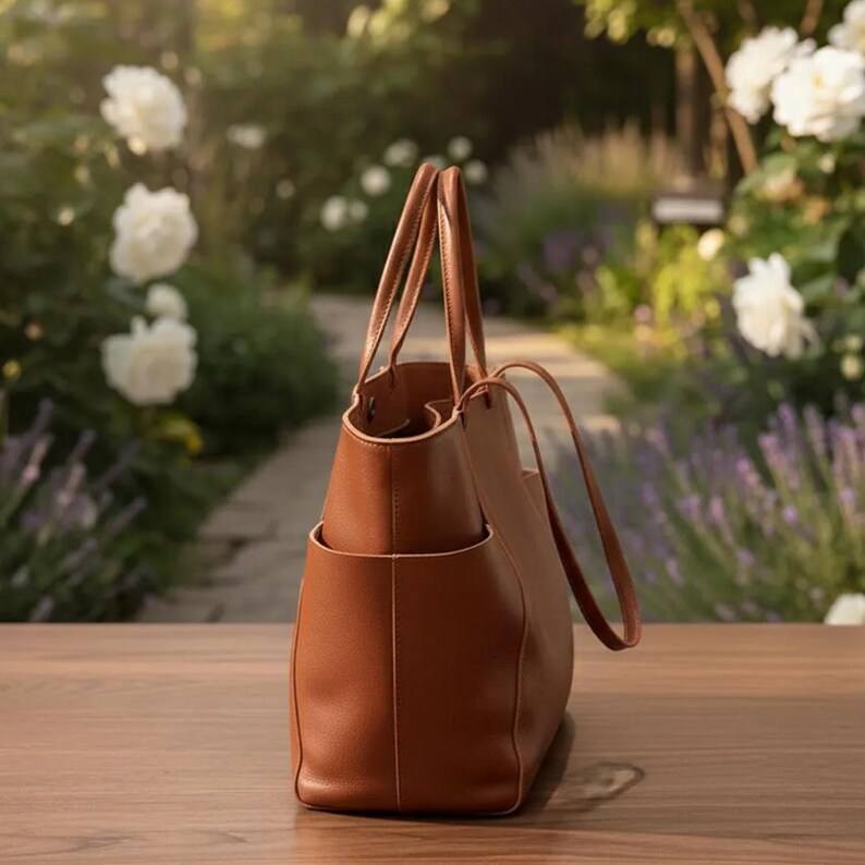 Women Casual Leather Tote Bag with Zipper Closure Large Capacity Waterproof Portable Shoulder Bag for Office Use