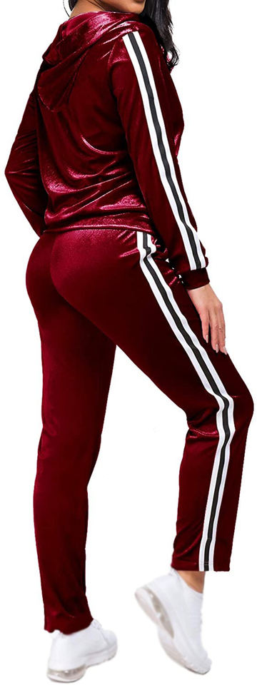 Women Casual Printed Velour Stripe Jogging Set | Zipped Hoodie & Pants | Fashion Sportswear Tracksuit Activewear