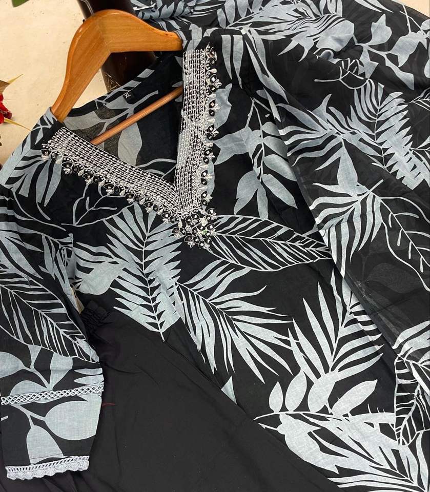 Product Name:Cotton Print & Hand Work Top With Pant And Dupatta