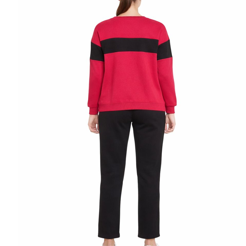 Women Casual Two Piece Outfit Set Long Sleeve Color Block Sweatshirt with Straight Pants Comfortable Daily Wear