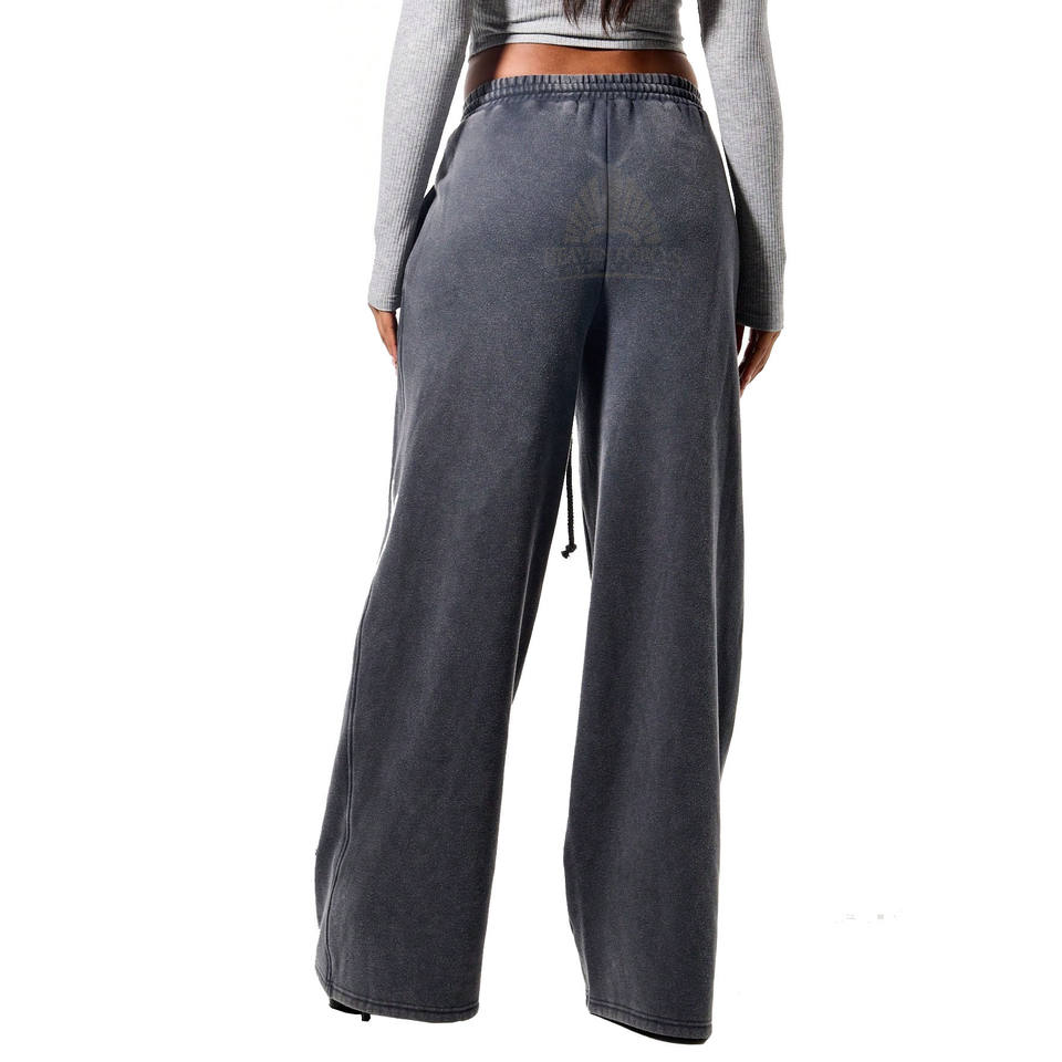 Women Casual Wide Leg Acid Washed Fleece Joggers Drawstring Waistband Organic Cotton Winter Comfortable Loose Sports Pants