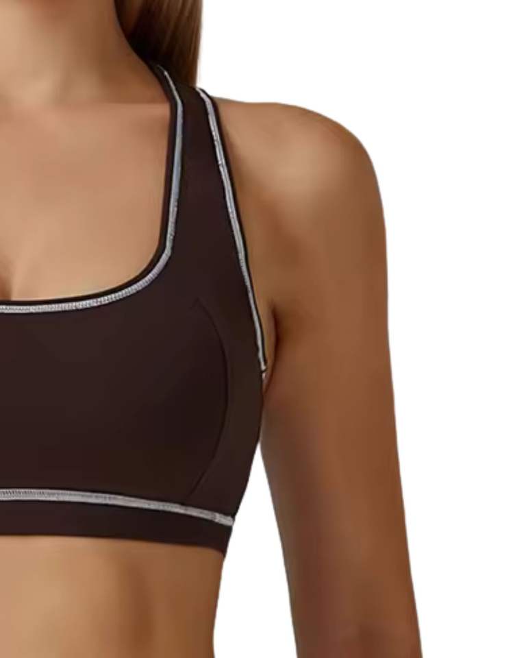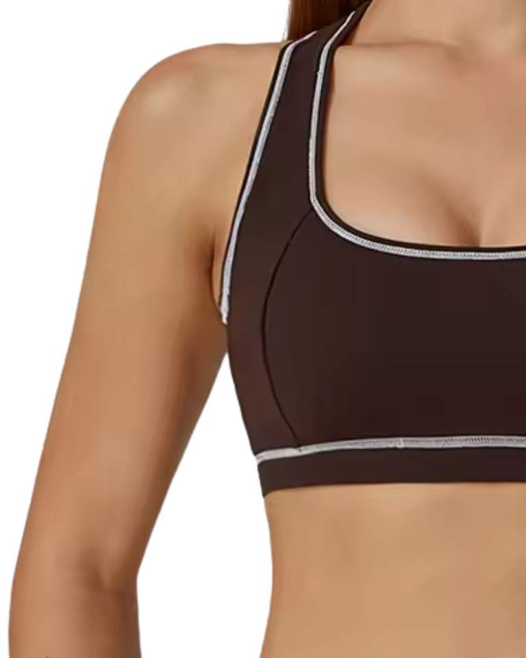 Women Chocolate Brown White Contrast Sports Bra And High Waist Leggings Set Stretch Yoga Fitness Gym Wear Custom OEM Wholesale