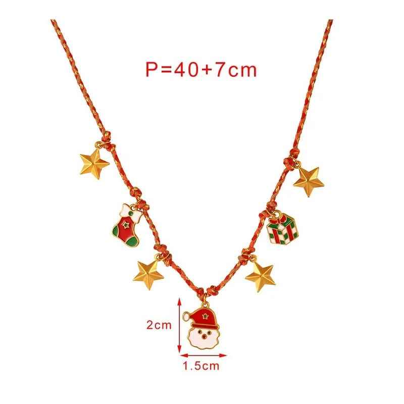 Women Christmas Titanium Steel Rope Chain Necklace Featuring Multi Charms and Santa Claus Inspired Classic Style