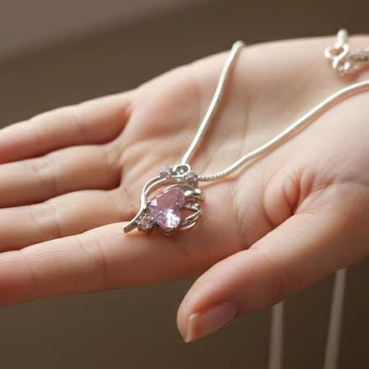 Women Classic Silver Jewelry Diamond PInk Moissanite Charm German Silver Pendant And Necklace Wholesale Fine Silver Jewelry