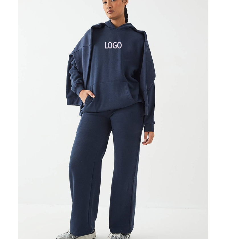 Women Clothe Midweight Tracksuit High Street Fashion Sweatpants XL Flat Long Sleeve Drop Shoulder Hoodie Fleece Cotton 2PCS Set