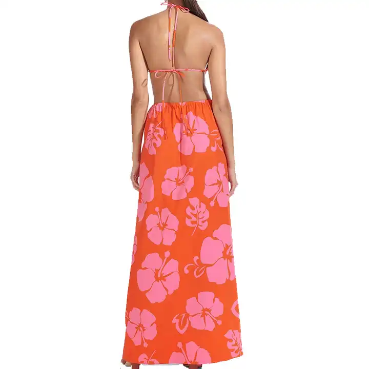 Women Clothing Manufacturers Custom Designed Womens Backless Casual Dresses Floral Printed Summer Maxi Boho Dress