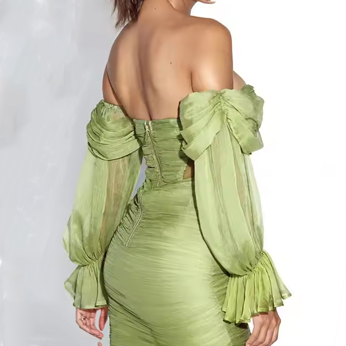 Product Name:Latest Transparent Chiffon Pleated Body con Dresse