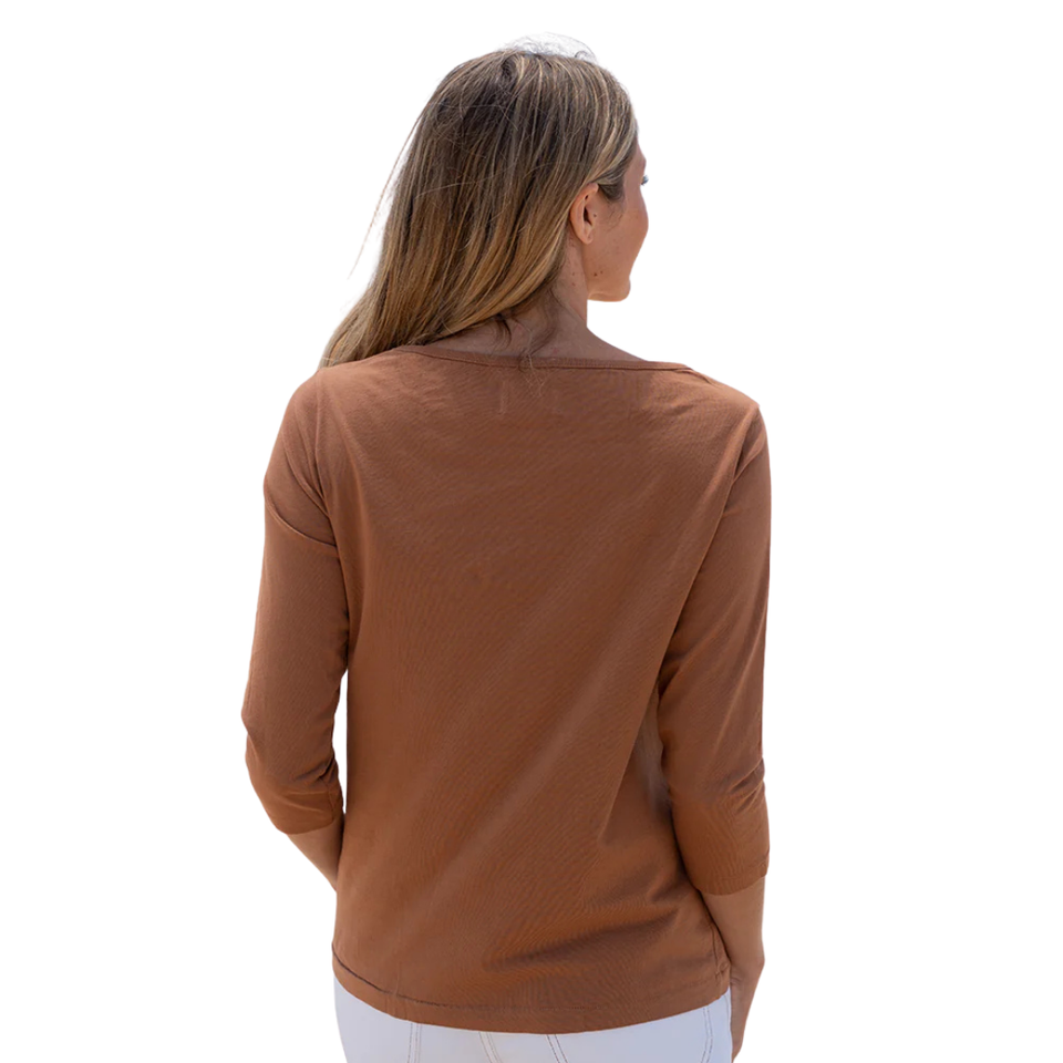 Women Copper 3/4 Sleeve Boat Neck T Shirt 100% Luxury Organic Cotton Pre Shrunk GOTS Certified Premium Soft Classic Fit Tee
