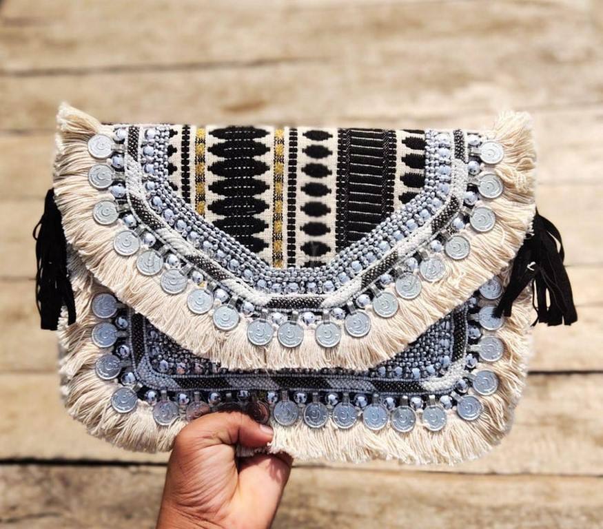 Women Cotton Canvas Clutch Bag Handmade Bohemian Clutch Bag Embroidered Clutch Bag