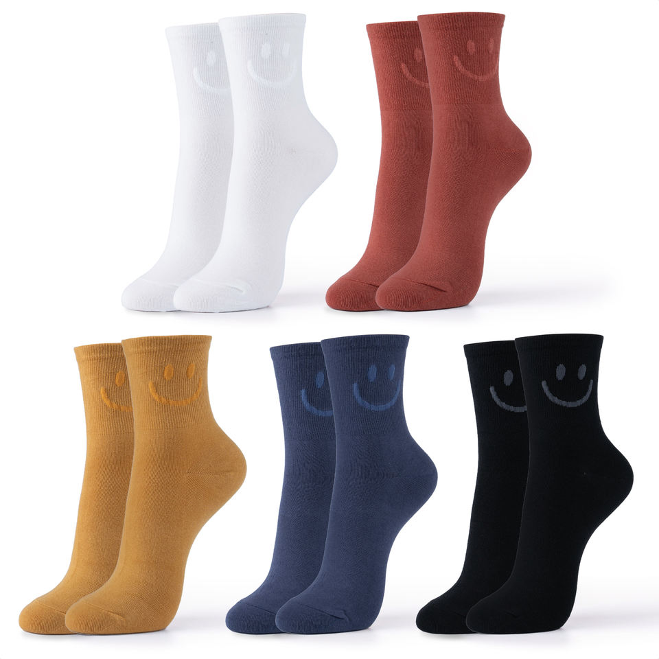Women Cotton Crew Socks-Anti-Bacterial Knitted Cute for Face Funny Cartoon Novelty Pattern Korean Daily Socks