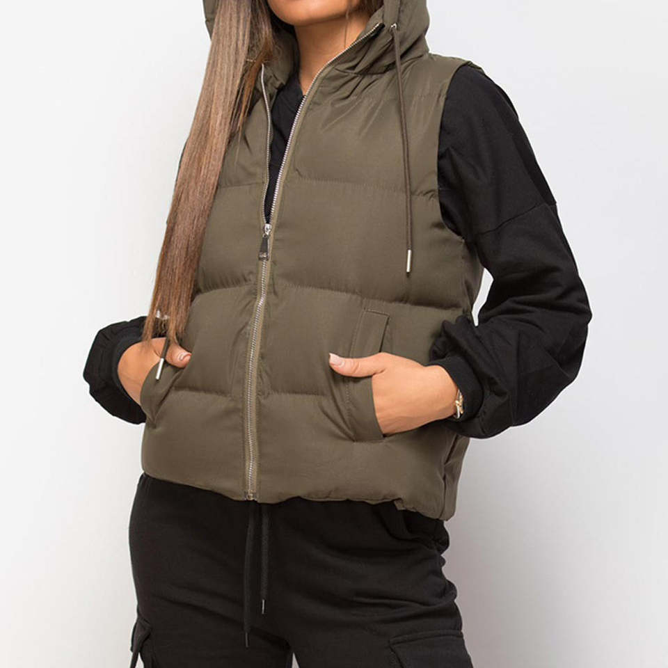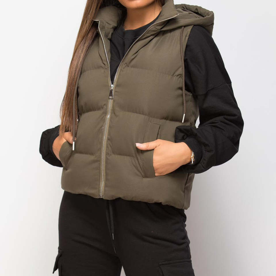 Women Cotton Cropped Jackets Vest for Winter Warm Women Jackets Zipper up Coats Solid Blank Custom Clothing