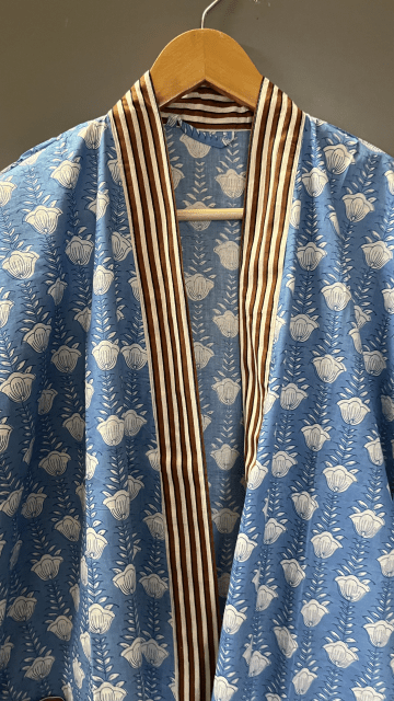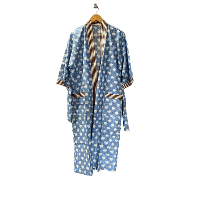 Women Cotton Floral Printed Kimono Robes Long Knit Bathrobe Lightweight Soft Sleepwear V-Neck Casual Ladies Loungewear Nighties