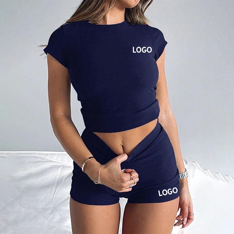 Women Cotton Jersey Basic Baby Tee Women Y2K Crop Top Short Sleeve Raglan T Shirts and Shorts Two Piece Set