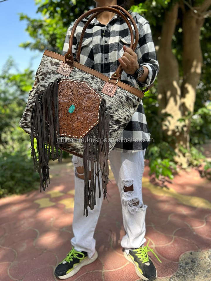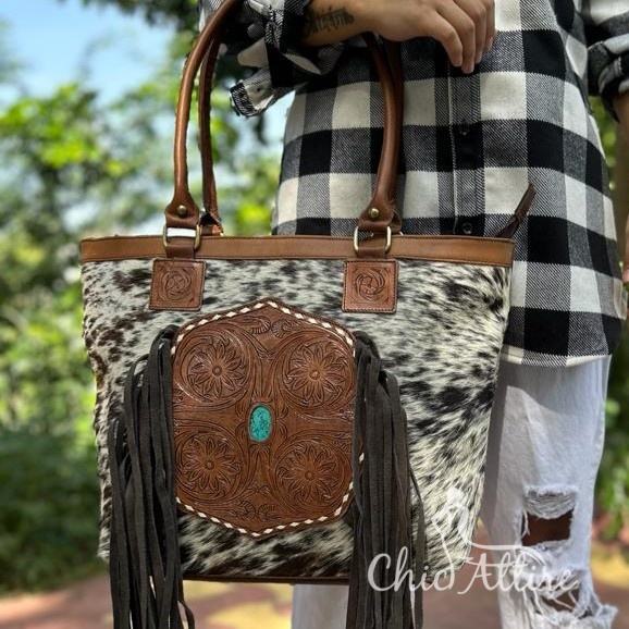 Product name:Women Hair On Cowhide Fringe Tote Bag