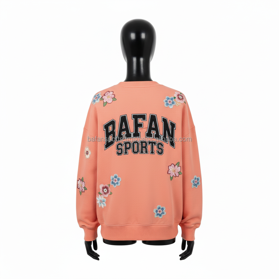 Women Crewneck Sweatshirt 320 GSM Soft Cotton Rich Fabric Peach Floral Embroidery Custom Logo Women breathable Sweatshirts
