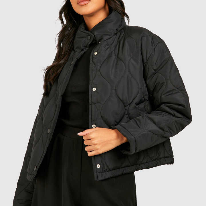 Women Crop Top Black Color Plain Quilted Padded Jacket Puffer Windbreaker Blank Bomber Zipper Ladies Quilted Jackets for Winter