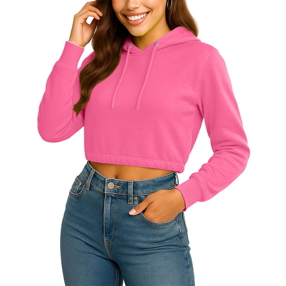Women Crop Top Hoodies 100% Cotton Fleece High Quality Women's Cropped Hoodies Long Sleeves Cute Pattern Printed Crop Top