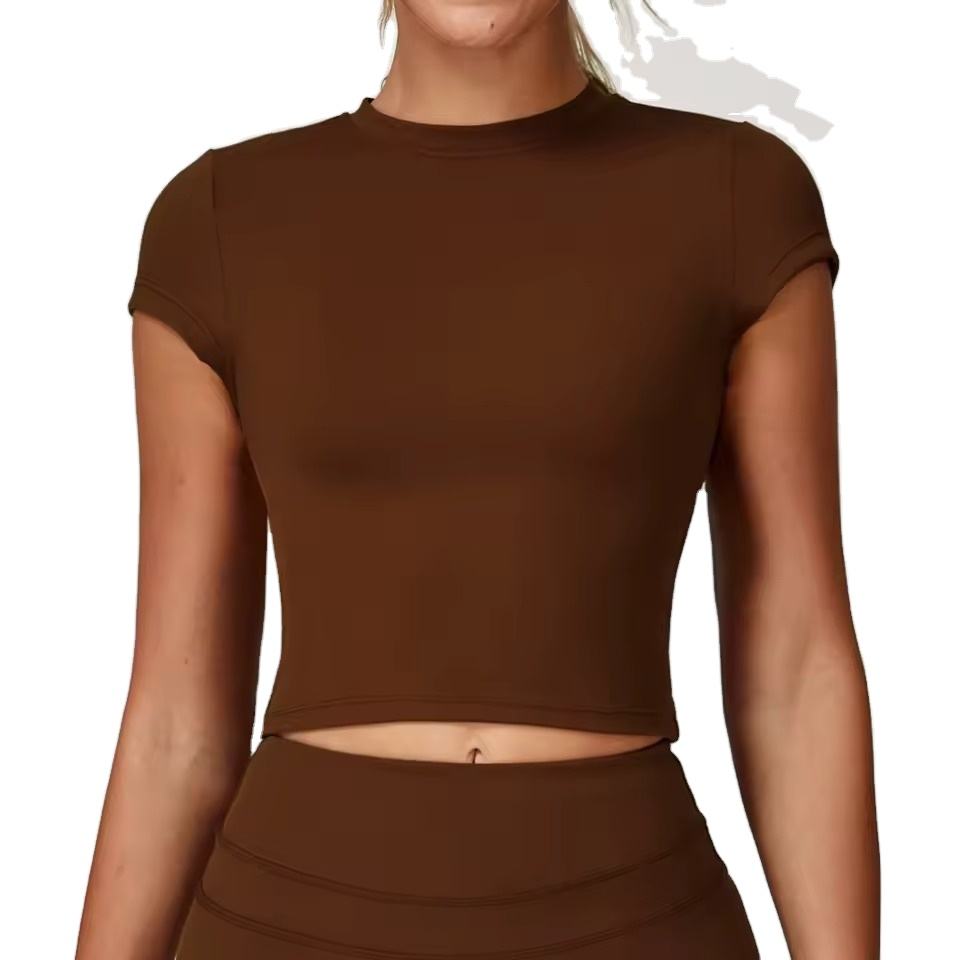 Women Crop Top Short Length Half Sleeve Gym Fitness Yoga Top Active Wear Workout Tee Shirts