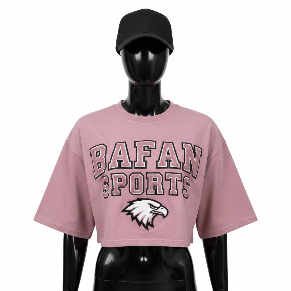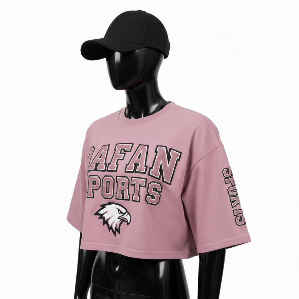 Women Crop Top T Shirt Premium Cotton Jersey GSM Soft Touch Pink Crop Style Puff Print Custom Logo Women Crop top Shirt Cotton