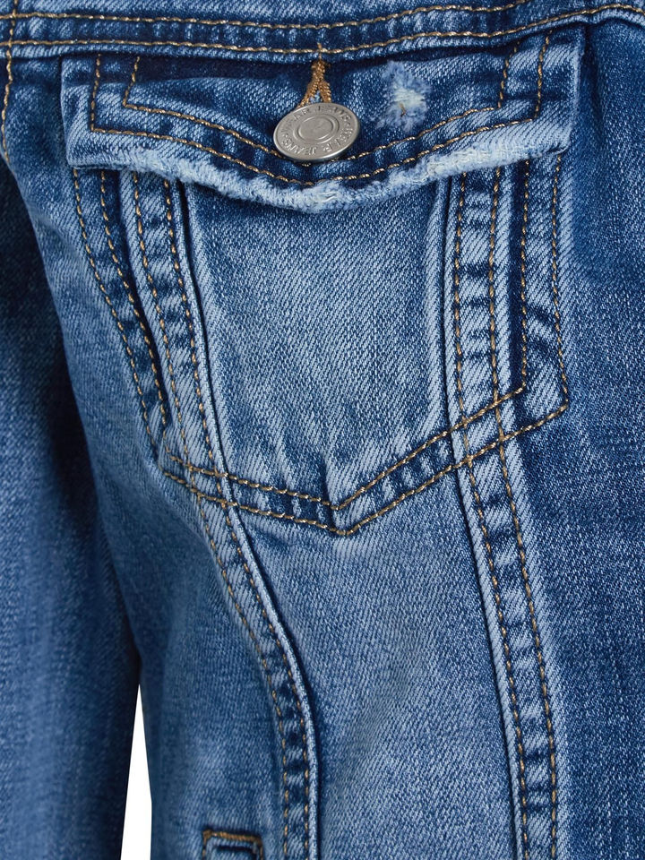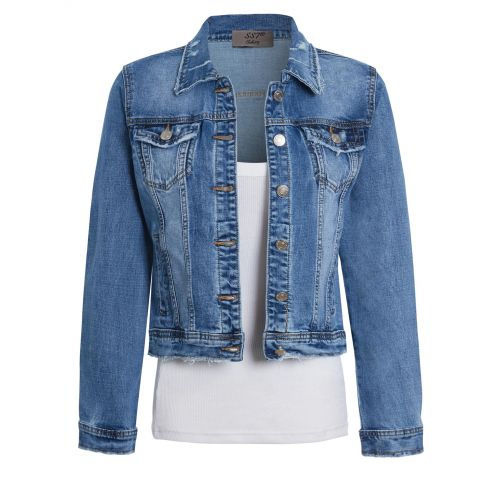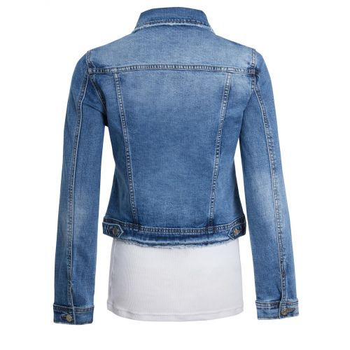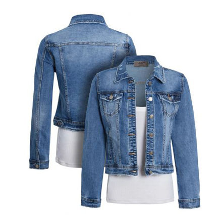 Women Cropped Denim Jacket Ladies Jeans Cropped Jacket Blue Long Sleeve 2 Front Pockets Jeans Jackets OEM Serviced Design