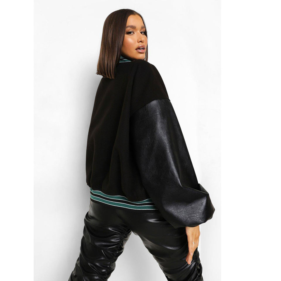 Women Cropped Premium Wool and Leather Varsity Jackets for University Teams Sports Groups and Wholesale Buyers