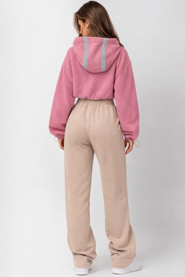 Women Cropped Sherpa Hoodie Reflective Stripe Pullover Soft Fleece Teddy Hoodies Streetwear Custom Manufacturing
