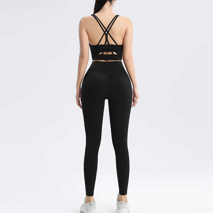 Women Cross Back Sports Bra High Waist Yoga Leggings Set Two Piece Seamless Gym Fitness Outfit Activewear Workout Training Suit