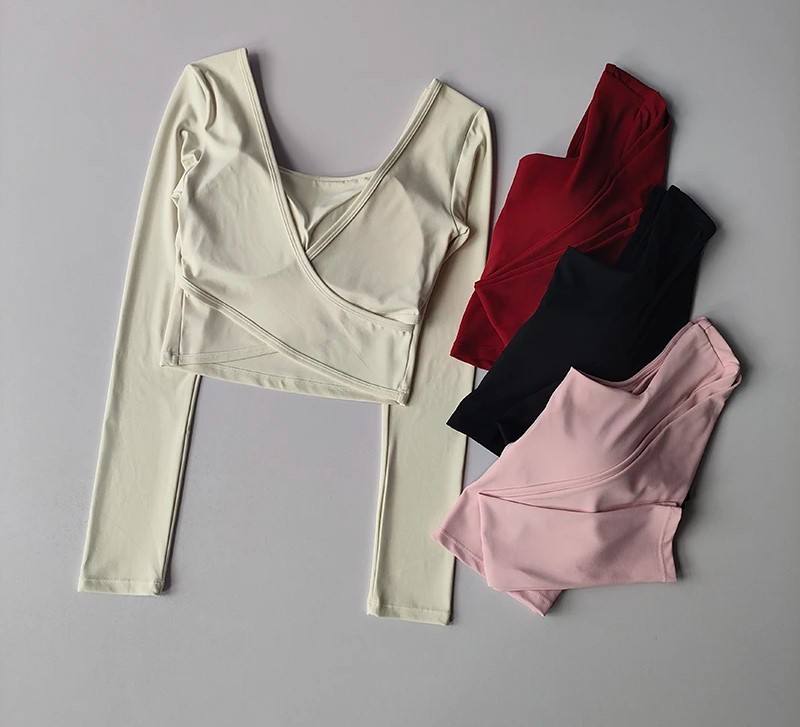 Women Cross Back Yoga Shirt Long Sleeve Slim Fit Sports Top