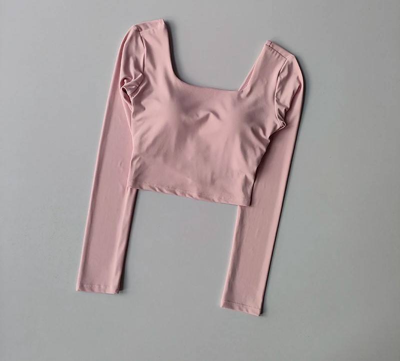 Women Cross Back Yoga Shirt Long Sleeve Slim Fit Sports Top with Fixed Chest Pad Running Training Fitness T Shirt