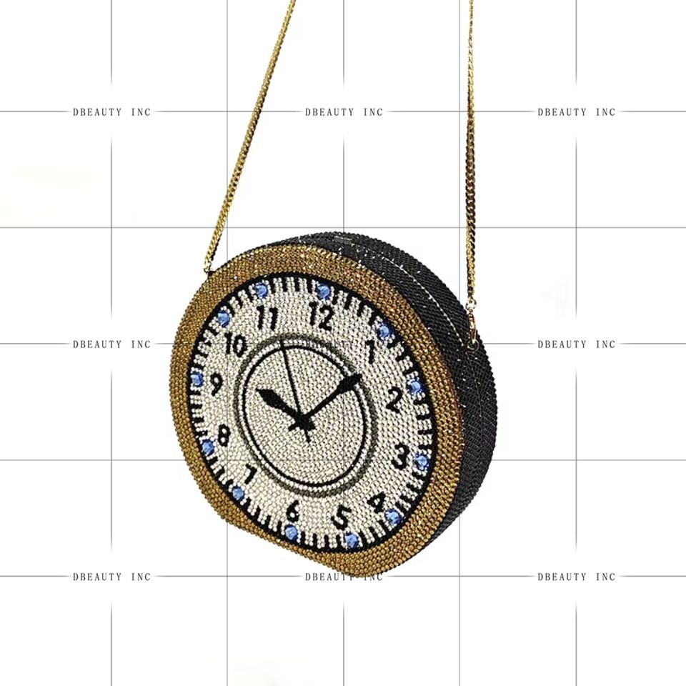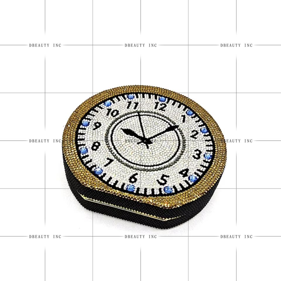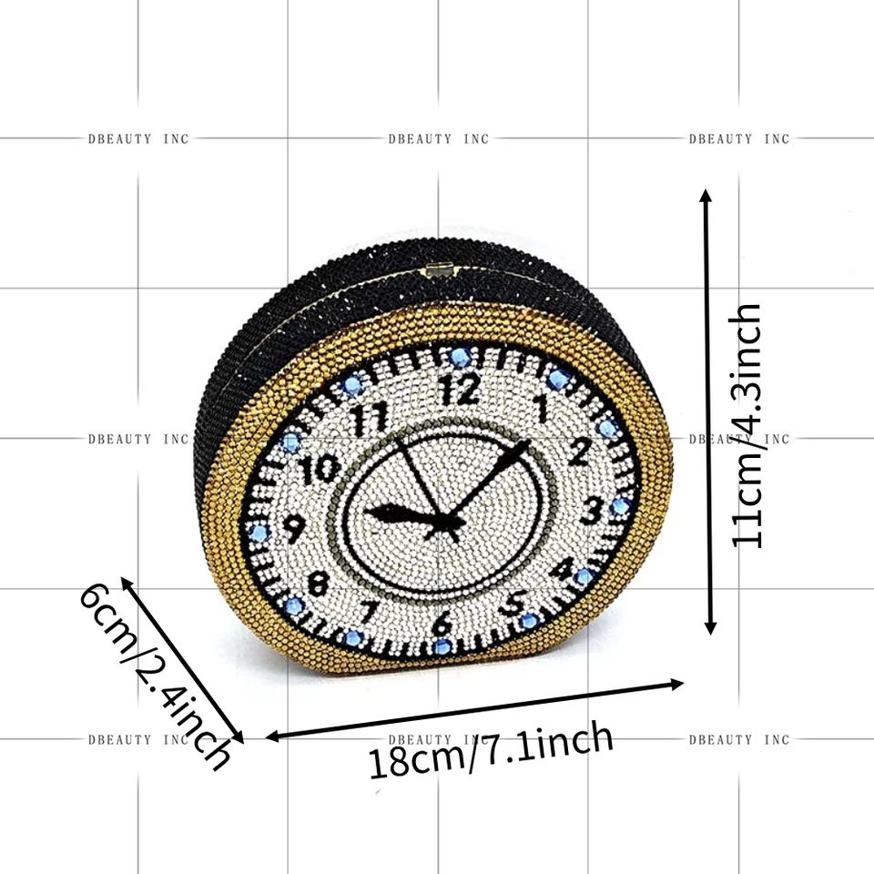 Women Crystal Clock Shape Evening Bag Beaded Rhinestone Clutch Vintage Cocktail Party Purse