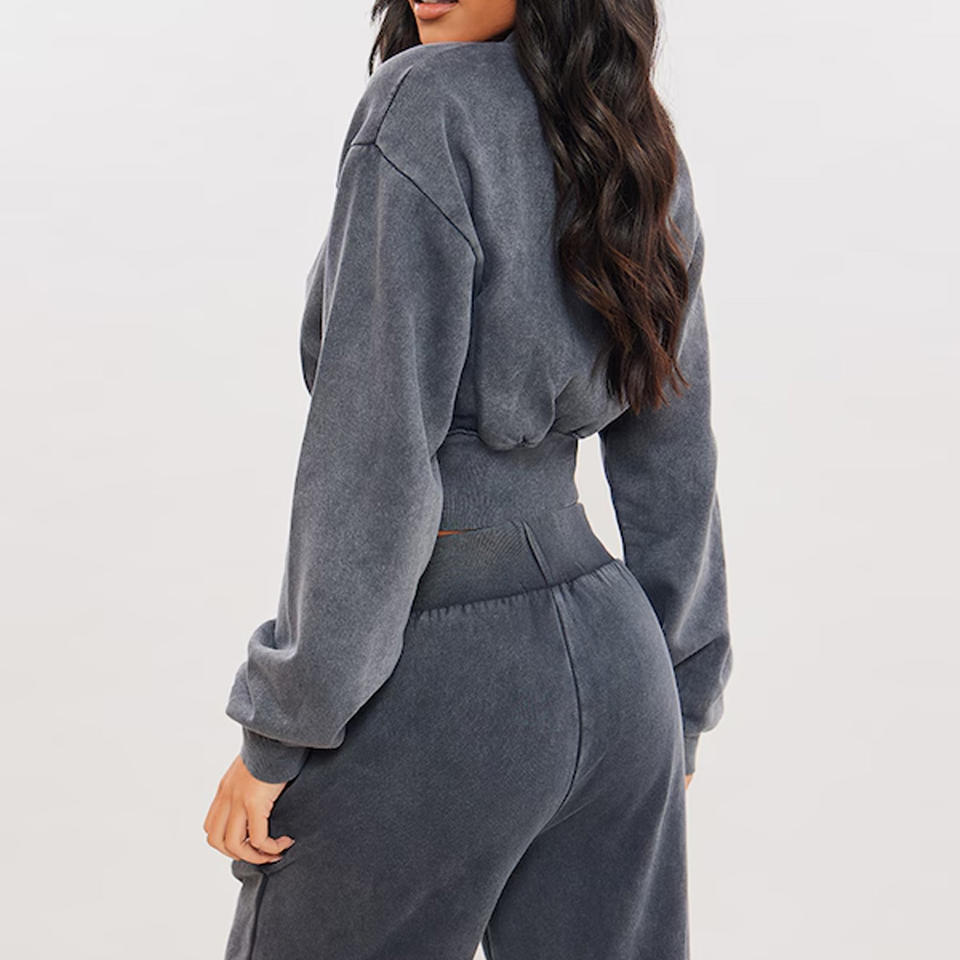 Women Custom Cropped Sweatsuit Two Piece Lounge Wear Outfit With Logo Personalization Comfortable Stylish Sportswear Set