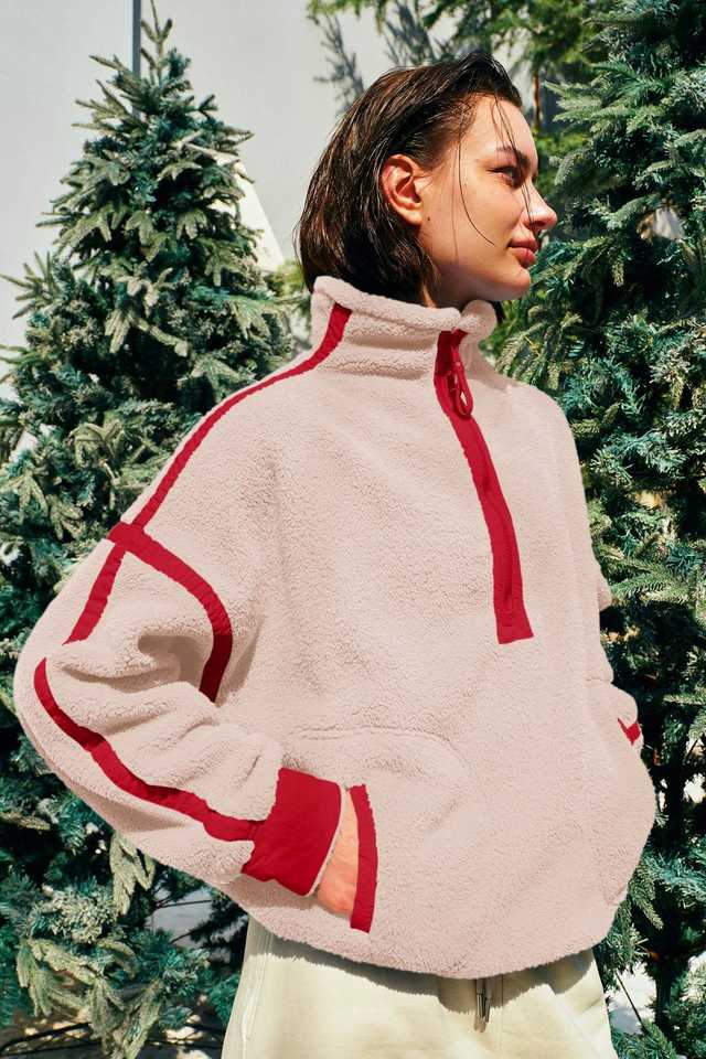 Women Custom Printed Sherpa Fleece Hooded Quarter Zip Soft Warm Breathable 420g Pullover Long Sleeve Casual Top Comfy Autumn