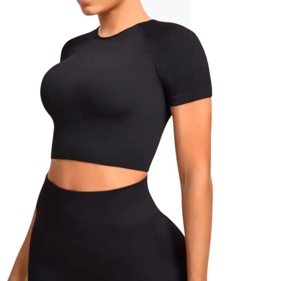 wrinkle, Ribbed, Backless, Crop Top, Contrast StitchFashion Element